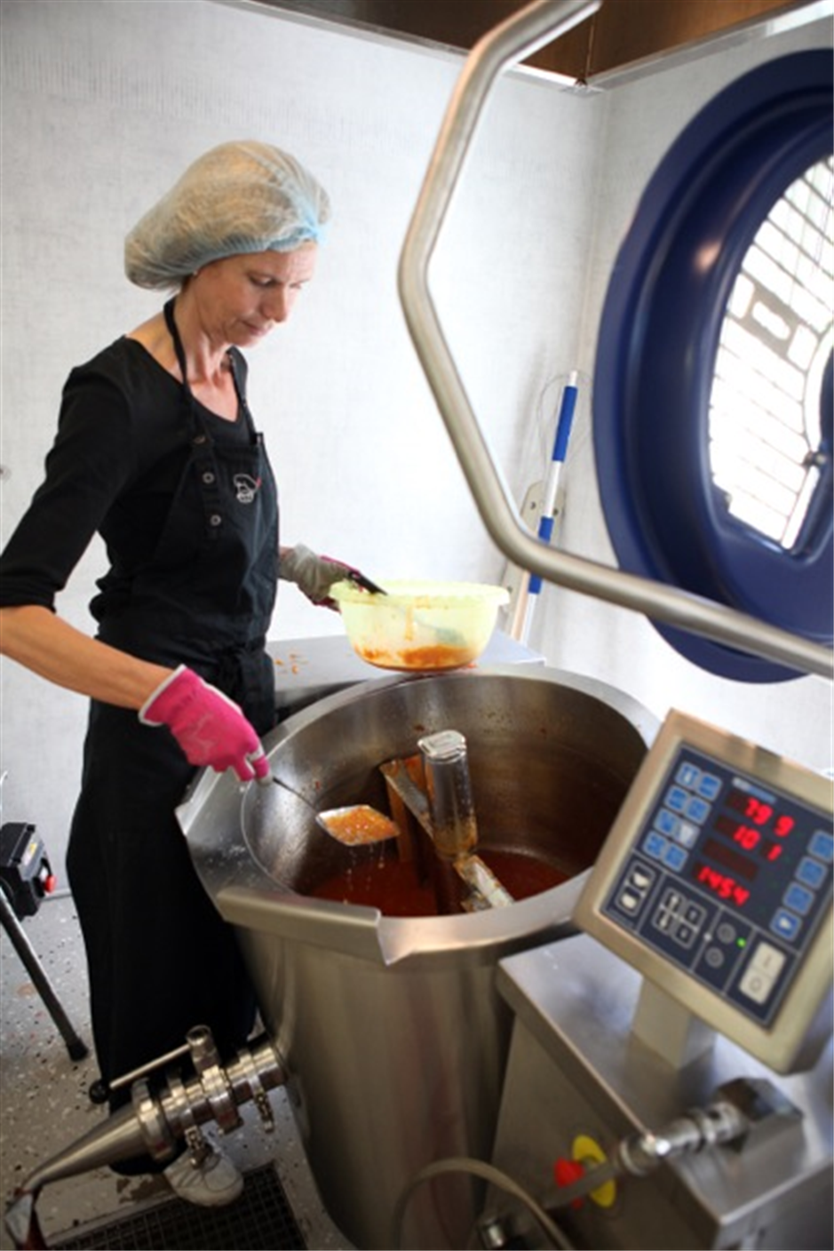 We fill the marmalade, honey, barbecue sauce, ketchup, honey glaze, mustard, pickled tomatoes and our Ölandic chutney on jars after preparation. A closed system from the boiling pans to the tap.